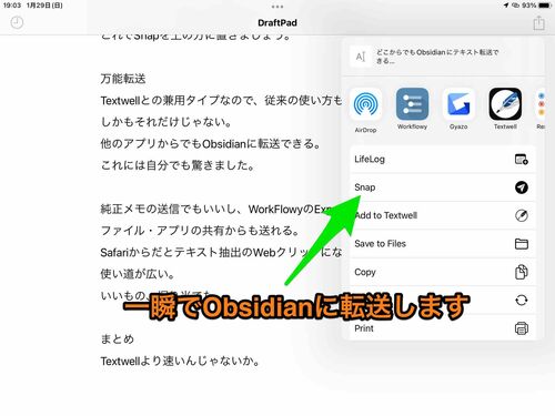 そうか、DaOシステムもアリか。 DaOシステム TaOシステムのTextwellをDraftPadに置き換えたシステム。 Snapを入れ替えれば行けると思った。 思った自分を褒めてあげたい。 Import Shortcut RecipeSnap 使い方 DraftPadで書いたものをObsidianに保存します。 …