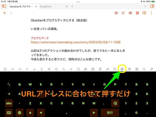 いま使っている環境。 ブログエディタ 以前は3つのアクションを組み合わせてましたが、使ううちに一本にまとまってきました。 今後も変化すると思うけど、現時点はこんな感じです。 BlogeEditor.md <%* e = app.workspace.activeLeaf.view.editor; p = e.get…