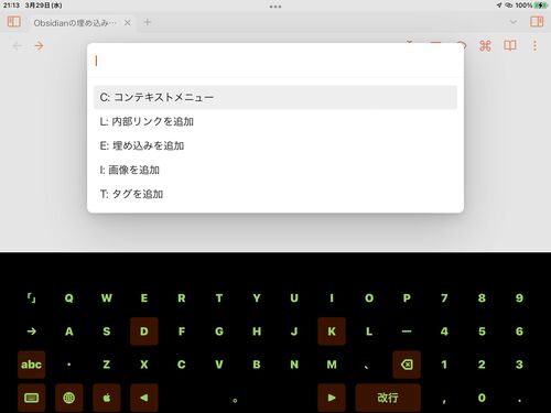 コンテキストメニューは、カーソル行のタイプに応じてメニューが変わります。 Obsidian Obsidian - Connected Notes 1.4.3分類: 仕事効率化,辞書/辞典/その他価格: 無料 (Dynalist Inc.) やっとモバイル版で対応になりました。 モバイルツールバーに「コン…