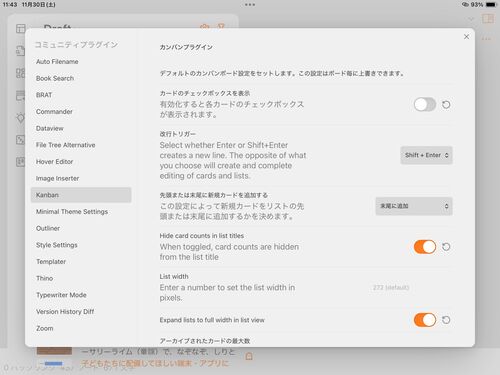 Kanbanプラグインがアップデートして list 形式が追加されました。 これがね、Workflowy に似ている。 面白く活用できないものか。 Kanban プラグインを導入してから設定を開いてください。 Import Obsidian: Kanban 「Expand lists to full width in list v…