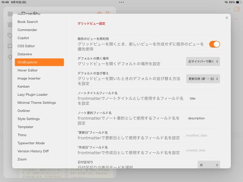 アップデートがありました。 GridExplorer ファイルエクスプローラの代わりになるプラグイン。 アップデートして内容表示に仕方が変わりました。 プロパティの項目を指定できるようになった。 これはWeb Clipperと相性がいい。 設定 グリッドビュー設定の「…