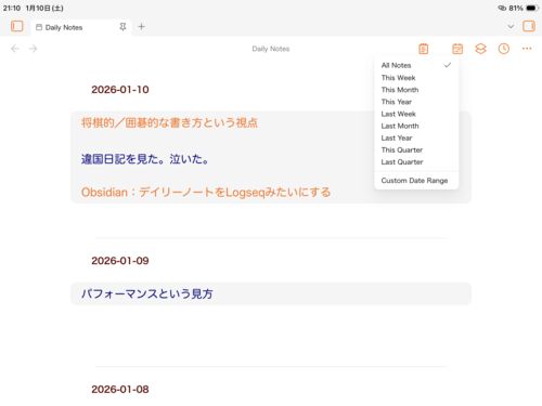 今年はデイリーノートを極める。 Daily Notes Editor Obsidianをデイリーノート・ベースで運用する。 それが新年の目標です。 それでいろいろプラグインを調べているところですが、 ありましたね。 スクロールするデイリーノート。 タイムラインに並んだ。 L…